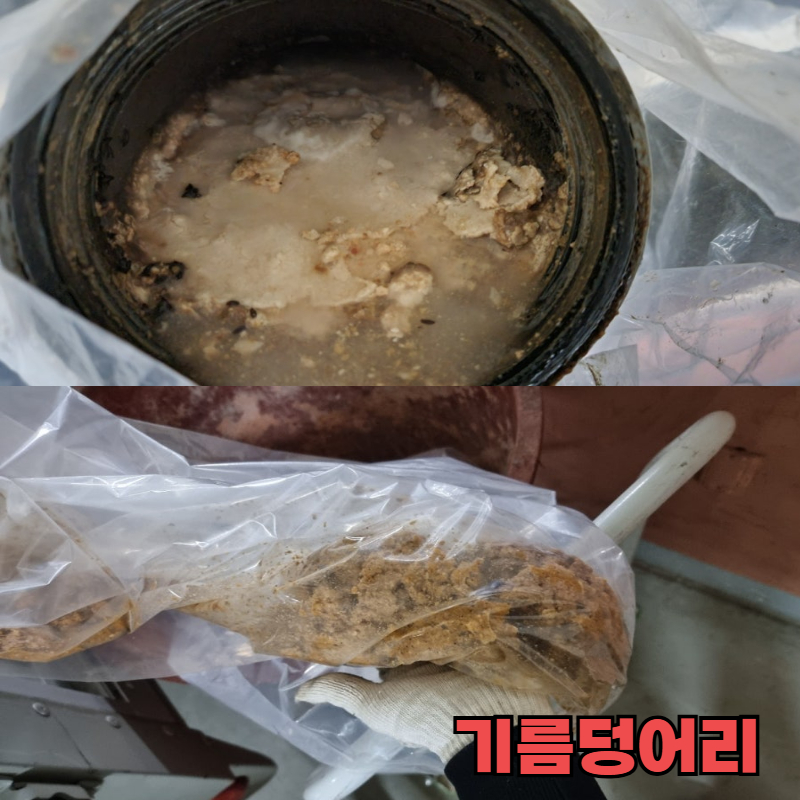 기름 덩어리가 5드럼 나올정도로 가득 했는데 그동안 물이 어떻게 배출되어 갔는지 신기 했습니다.
