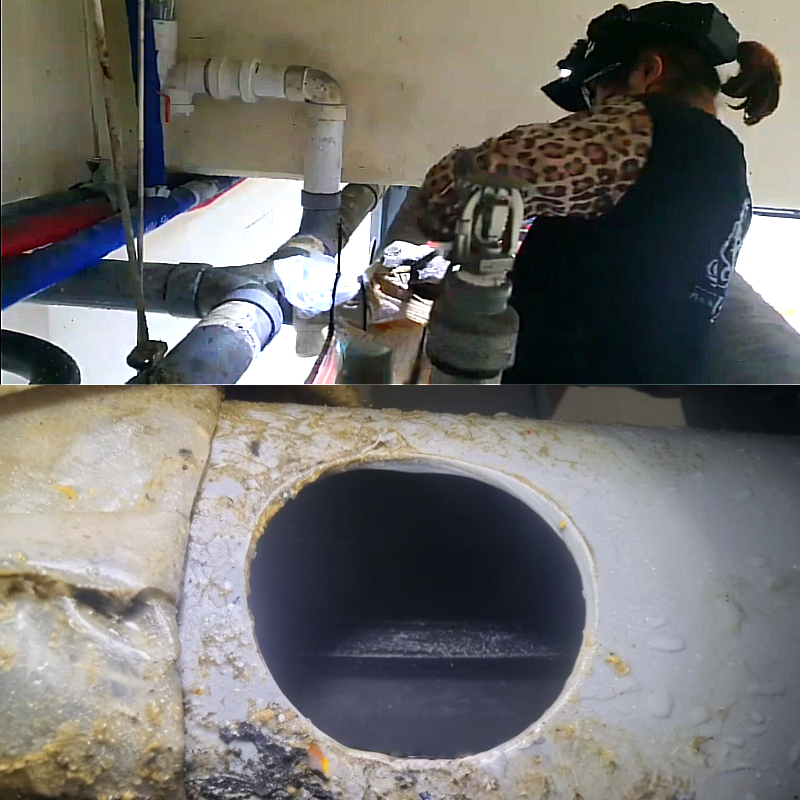 내시경으로 배관 내부를 촬영하려고 해도 이미 꾸덕해진 기름덩어리가 하수구내에 가득차 있어 진입조차 어려웠습니다.