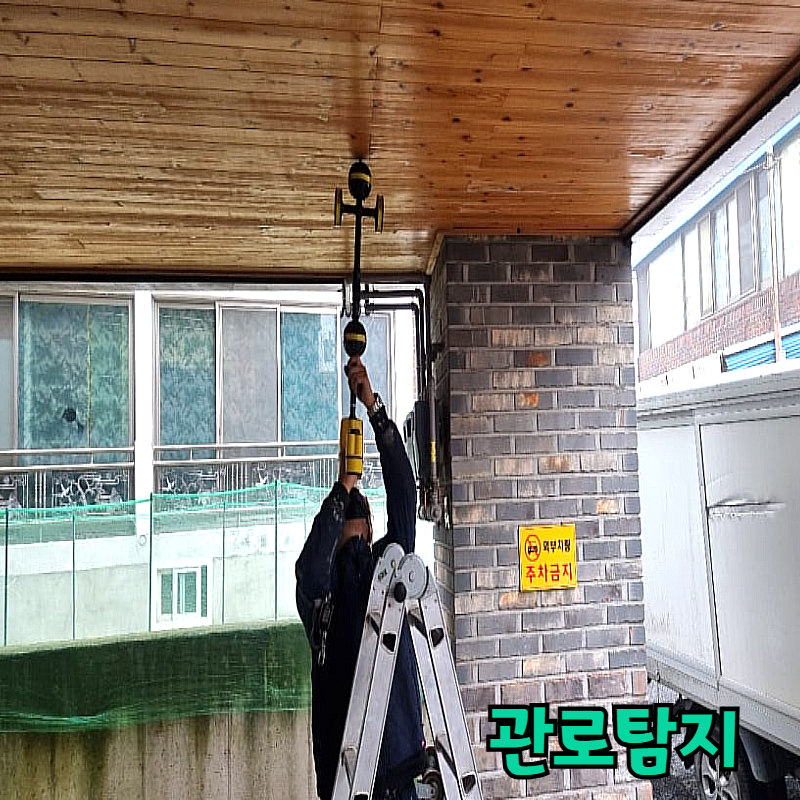 필로티 건물은 1층 천장에 배관이 있습니다. 점검구를 통해 배관의 연결 구조를 파악 했지만 이곳에서 고압세척을 하기가 좋치 않에 내부에서 뚫기로 계획을 세웠습니다.