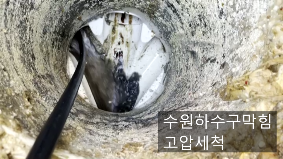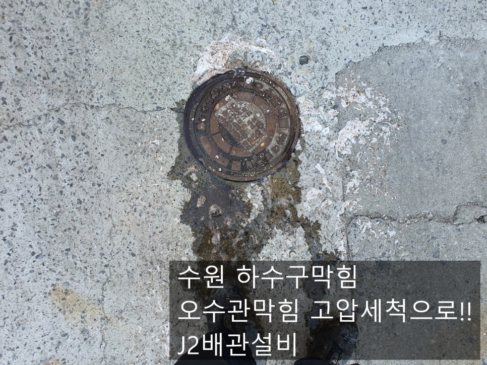 오수받이에서는 이미 하수구물이 역류했던 흔적이 있었는데 뚜껑을 열고 확인해보니 수원하수구고압세척이 필요해 보였습니다.