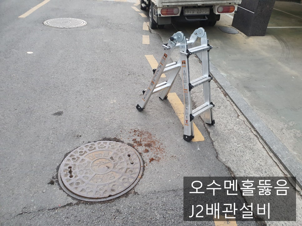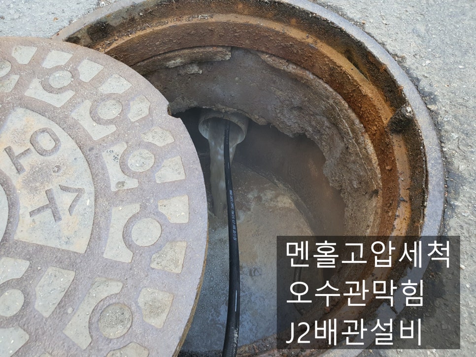 맨홀과 연결된 배관이 막힌것 같아 연결된 맨홀뚜껑을 열고 고압세척에 들어갔습니다.