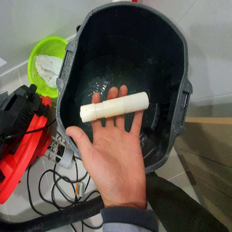 역시나 변기막힘 현장이 쉽게 끊나지 않았습니다. 변기를 탈거해야 하는가 고민이 들었지만 뜯지 않고 해결하는 것이 비용적으로나 작업 효율적으로나 더 좋기 때문에 관통기로 휴지걸이 각로를 바꿔가며 석션으로 빨아당겼습니다.