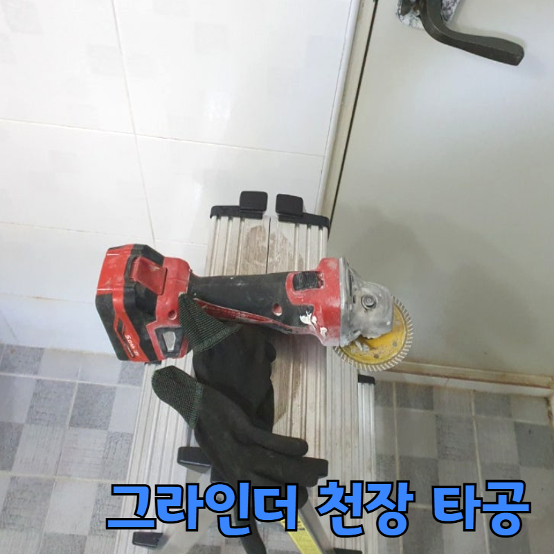 아래집 화장싱 천장을 그라인더로 절개 하였습니다. P트랩이 있는 곳에 손이 닫지 않았기 때문입니다.