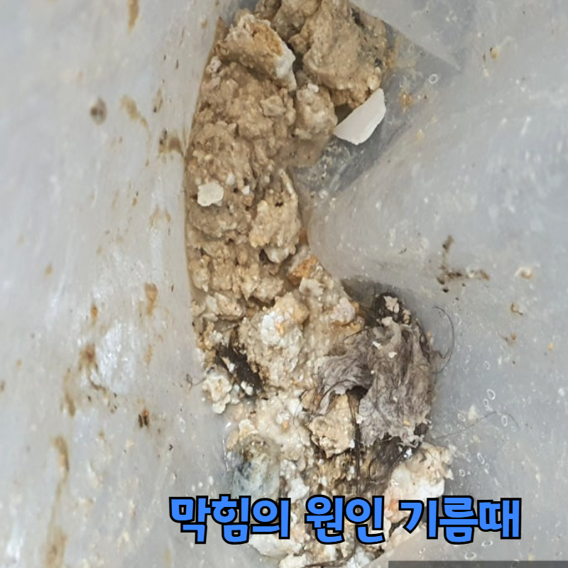 P트랩 내부에도 기름 덩어리가 그대로 남아 있었는데 장비로 파낸 뒤 배출되는 하수구도 뚫어주었습니다.