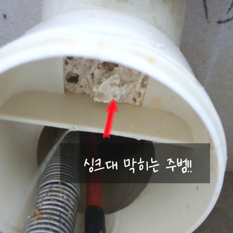 가장 먼저 온 프랜차이즈 업체에서는 싱크대 하수구에 석션으로 이물질 흡입 후 플랙스샤프트로 뚫어 보려다 실패했습니다.