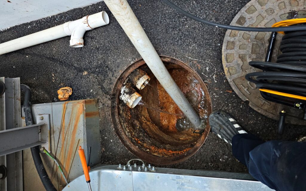 평택하수구막힘 고압세척 현장입니다.배관이 막혀 맨홀로 물이 넘치는 상황이었습니다.
