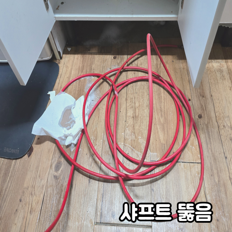 아파트 싱크대 배관이여서 대략 5미터 정도 뚫어주니 물이 시원하게 내려가기 시작했습니다!
