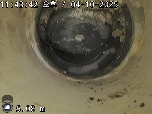 배관 내 이물질이 걸려 있었는데 카메라 상으로 확실하게 판단이 어려웠지만 화장실 하수구의 이물질 거름 부속 같았습니다.