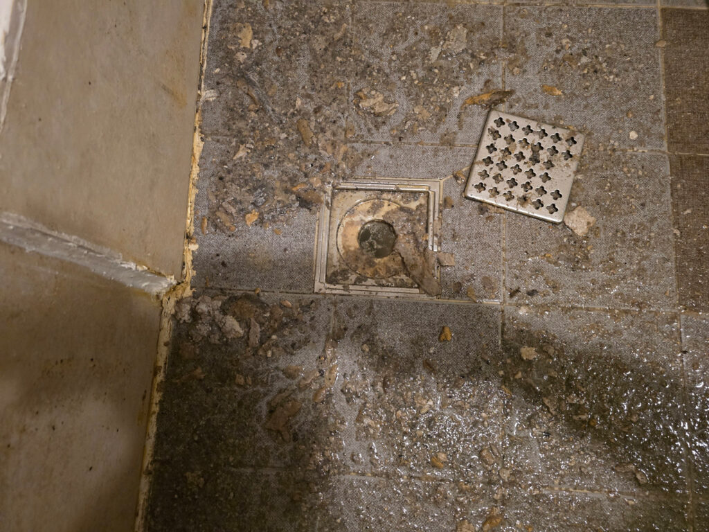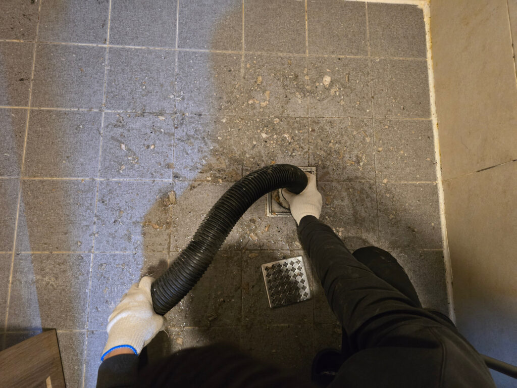 먼저 화장실 하수구 내부의 물을 석션으로 제거해 주었습니다.