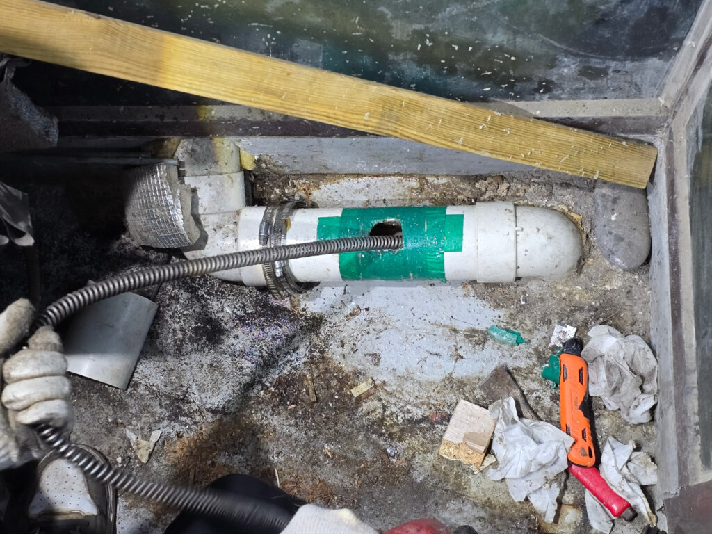 굳이 이렇게 한 이유는 매인 배관에 구멍을 내어 뚫어야 하는데 화장실 하수구 물이 그대로 넘쳐 날것 같았기 때문입니다.