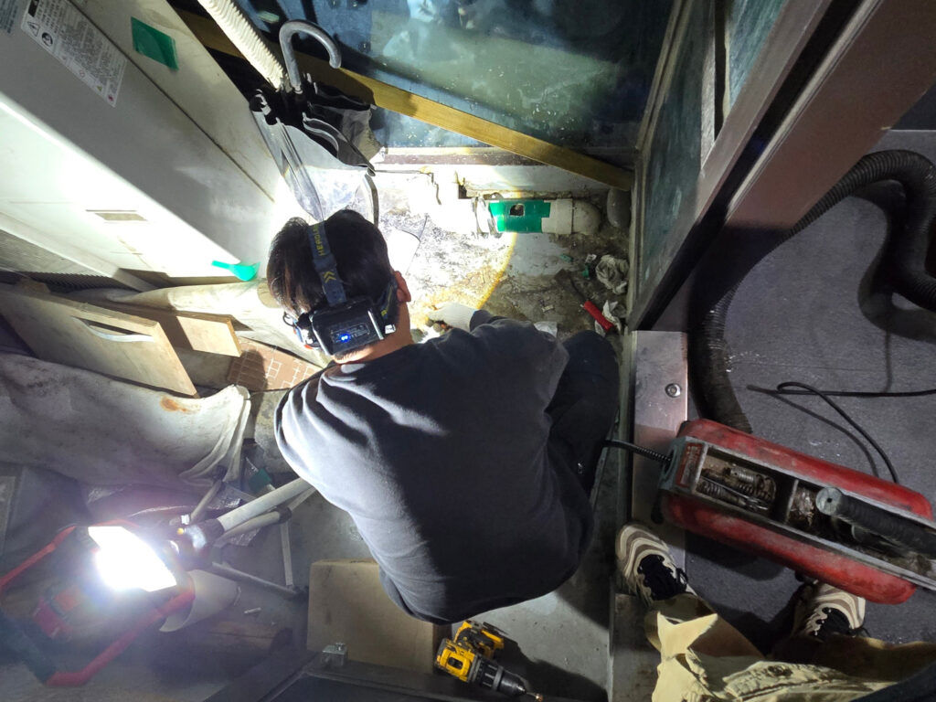 플랙스 샤프트로는 이곳 배관을 통과시키기 어려워 전동 스프링 장비를 주력으로 활용했습니다.